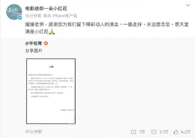 电影“小红花”官博悼念朱媛媛:愿天堂满是小红花