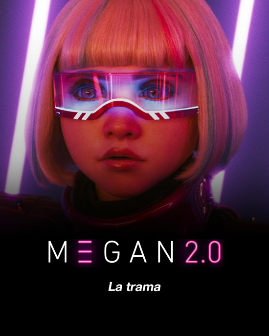 《梅根2.0》故事发生在梅根(珍娜·戴维斯 配音)被摧毁的两年后,珍玛(艾莉森·威廉姆斯 饰)已经成为一名作家,并提倡政府监督人工智能。凯蒂(维奥莱特·麦格劳 饰)则生活在珍玛的过度保护下。她们不知道的是,制造梅根的技术被一家国防承包商窃取并滥用,他们制造出AI机器人艾米莉亚(伊万娜·萨赫诺 饰)。但随着艾米莉亚自我意识增强,她不再接受人类的命令。而本已沦为智能语音助手的梅根,似乎是帮助她们对抗艾米莉亚的绝佳选择。凯蒂说服姨妈复活梅根,并进行升级,使她更快、更强大、更致命。