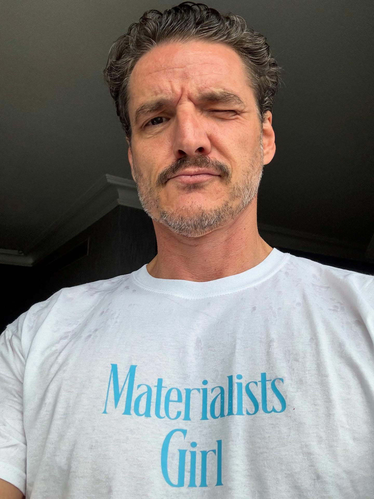 佩爹晒《物质主义者》幕后照 为“情敌”美队拍照